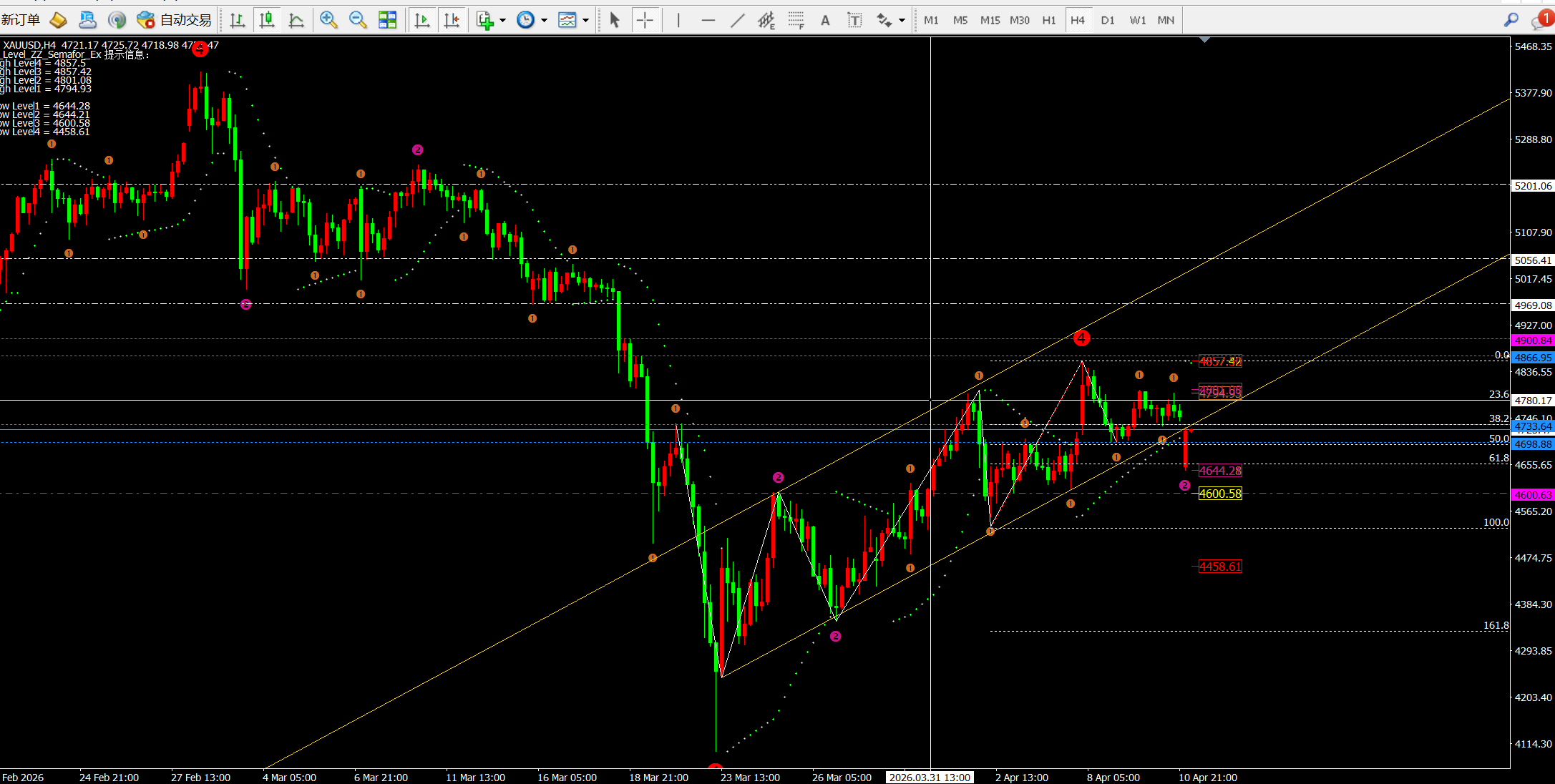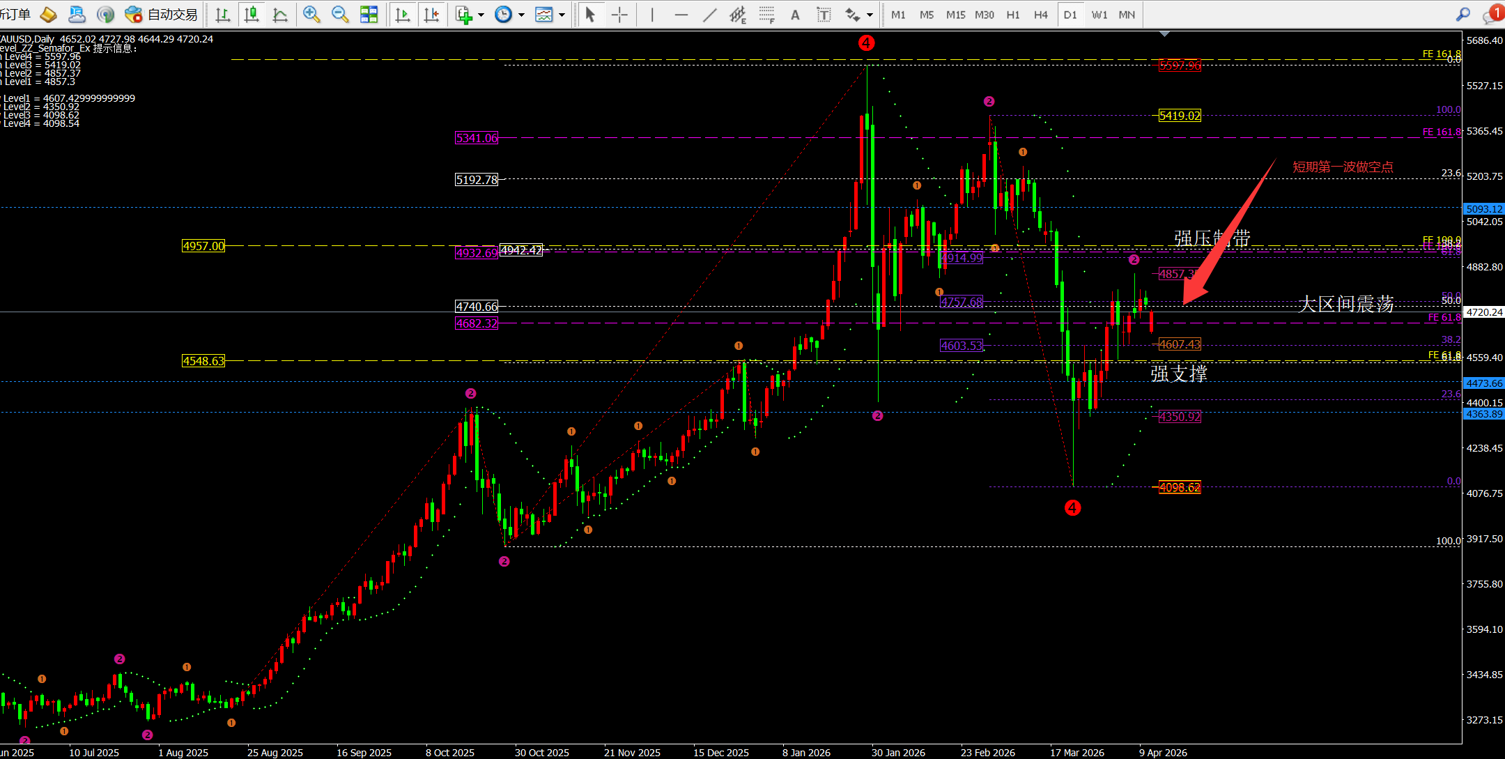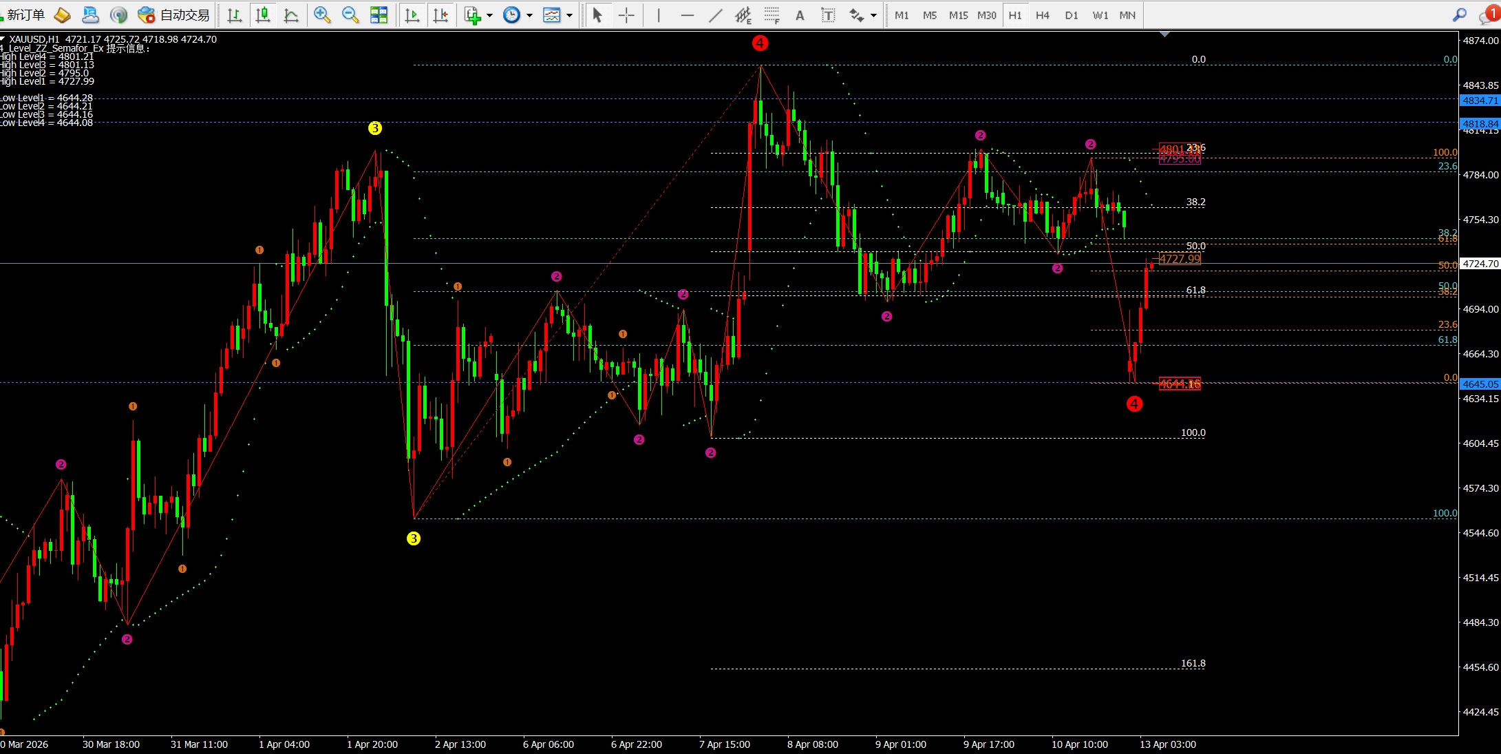 Ⅰ:是目前冲高回落 我们进行第一波空Ⅱ:是间接期待回落做多Ⅲ得等欧美盘时段才无机会空。目前4660-4760区间高估滴着即可。